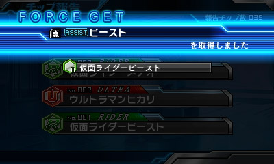 [2] 「仮面ライダービースト」のチップを報告すると、新フォース【ASSIST ビースト】を取得!