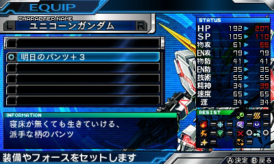 [2] 「明日のパンツ+3」(HP・SP・物攻・精神がUP)が完成。