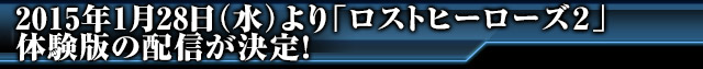 - 発売にさきがけて2015年1月28日(水)より、「ロストヒーローズ2」の体験版の配信が開始される。