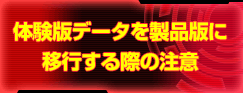 ※体験版データを製品版に移行する際には、必ず製品版を一度起動してから、体験版にてデータ移行を行って下さい。
